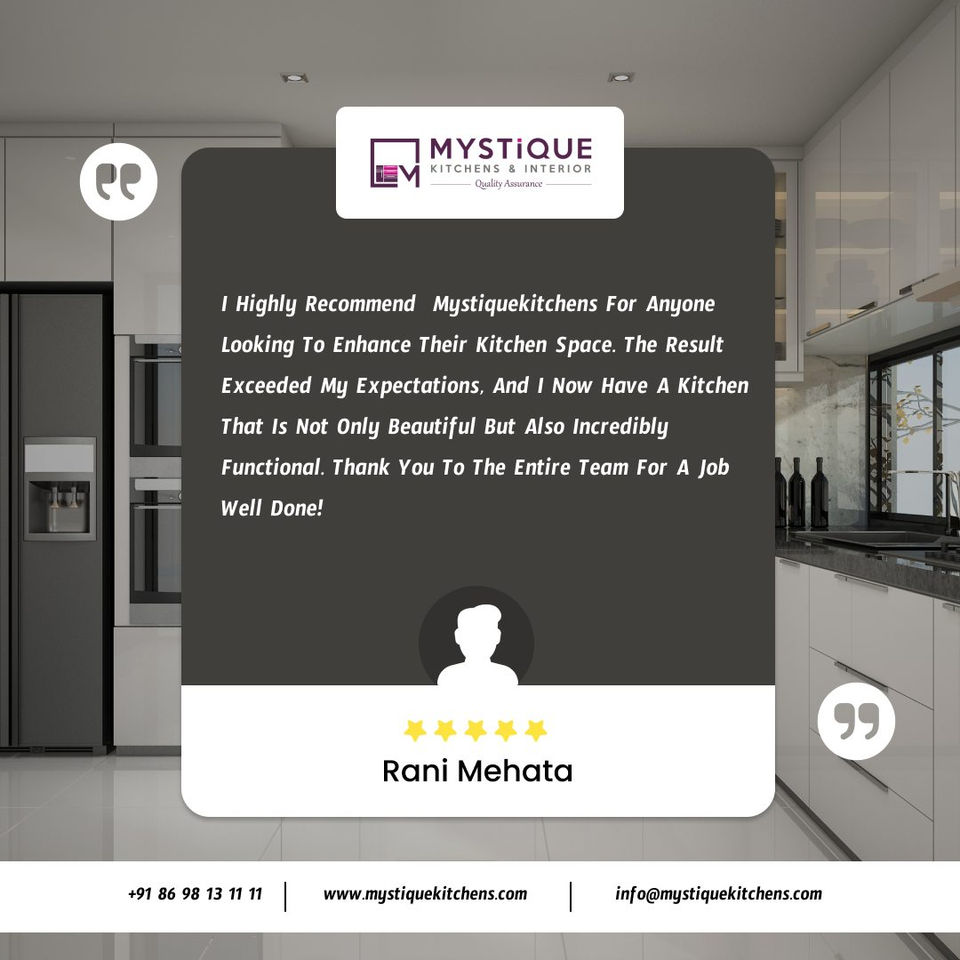 “Beautifully designed by mystique kitchens and interiors , the way we want our house to be simple, small and evergreen and vintage look. Thanku so much for your support and immense help by getting our small dream house .”
